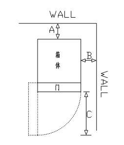 地面平整,通风良好 设备周围无强烈振动 设备周围无强电磁场影响 设备周围无易燃、易爆、腐蚀性物质和粉尘 设备周围留有适当的使用及维护空间,如下图所示: |